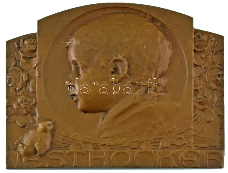 Ausztria ~1900. "Kismadár" bronz plakett. Szign.: Joseph Prinz (49x61mm) T:AU