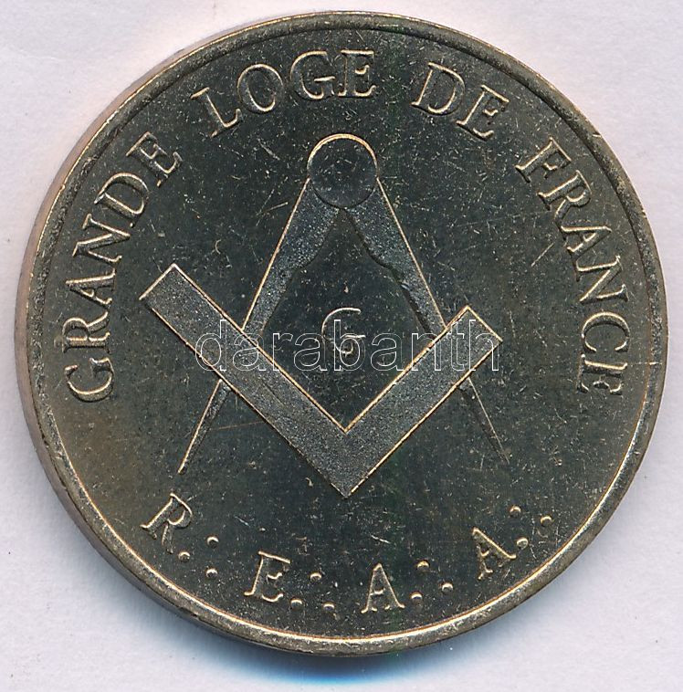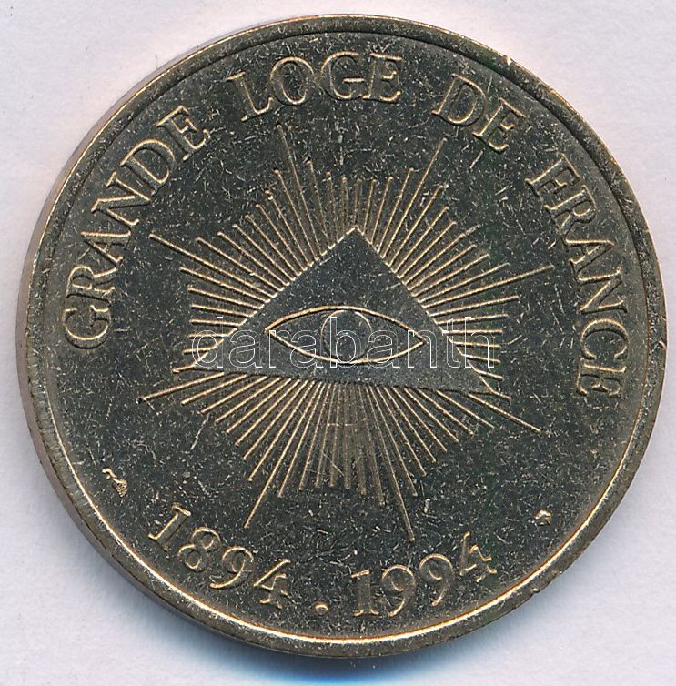 Franciaország 1994. "Grande Loge de France 1894-1994 / Grande Loge de France - R E A A" kétoldalas szabadkőműves bronz emlékérem kapszulában (30mm) T:AU,XF