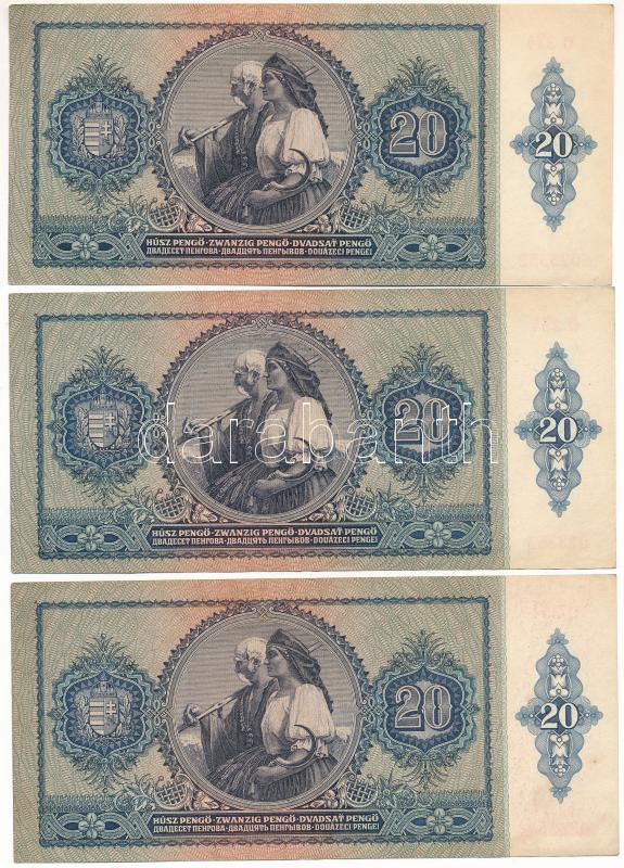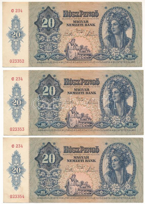 Leírás: 1941. 20P (3x) sorszámkövetők "C 234 023352 - C 234 023354" T:F szép papír