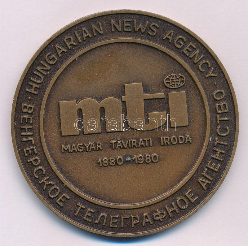 Leírás: 1980. "Magyar Távirati Iroda 100 éves 1880-1980" bronz emlékérem (70mm) T:AU patina
