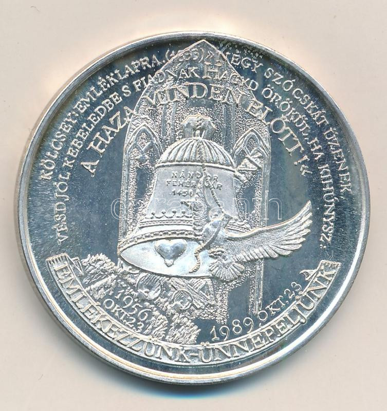 Bozó Gyula (1913-) / Szabó Géza (1939-) 1989. "A IV. Magyar Köztársaság kikiáltásának emlékére / Magyarország független demokratikus jogállam" Ag emlékérem (35,67/0.835/42,5mm) T:UNC (eredetileg PP)
