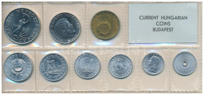 Leírás: 1972. 2f-10Ft (9xklf) érmés forgalmi sor fóliatokban T:UNC patina