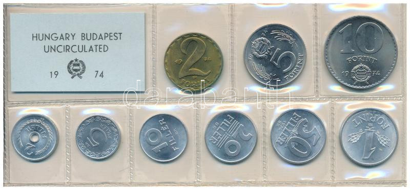 Leírás: 1974. 2f-10Ft (9xklf) érmés forgalmi sor fóliatokban T:UNC patina
