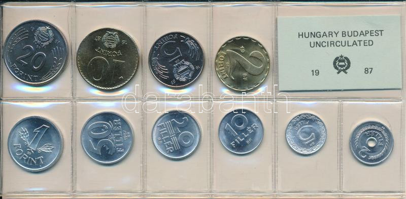 Leírás: 1987. 2f-20Ft (10xklf) érmés forgalmi sor fóliatokban T:UNC Adamo FO20