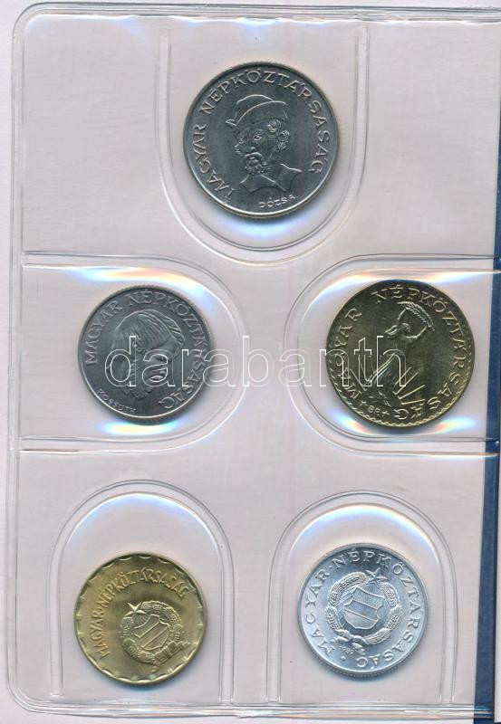 Leírás: 1989. 2f-20Ft (10xklf) érmés forgalmi sor "Magyar Népköztársaság forgalmi érméi" sötétkék műbőrtokban T:UNC Adamo FO22.1