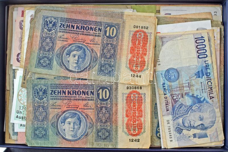 ~477db-os vegyes bankjegy tétel a világ minden tájáról, rendkívül színes anyag. Benne a teljesség igénye nélkül: sok osztrák felülbélyegzéses korona bankjegy, az orosz polgárháború kiadásai, kevés katonai kiadás, afrikai valamint távol-keleti papírpénzek T:UNC-VG