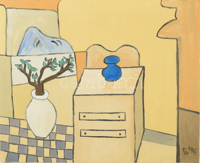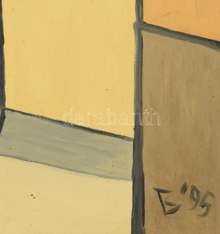 Leírás: B '95 jelzéssel: Enteriőr. Olaj, vászon. Apró benyomódással. 50x60 cm