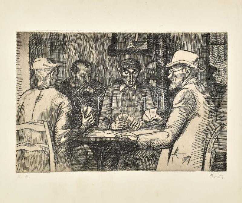 Barta jelzéssel: Kártyázók. Rézkarc, papír. 18x37 cm. https://www.darabanth.com/hu/472-Gyorsarveres/472.0/Festmenyek-es-grafikak/Festmenyek-es-grafikak-jelzessel-jelzes-nelkul~1000002/Barta-jelzessel-Kartyazok-Rezkarc-papir-18x37-cm~II2872796