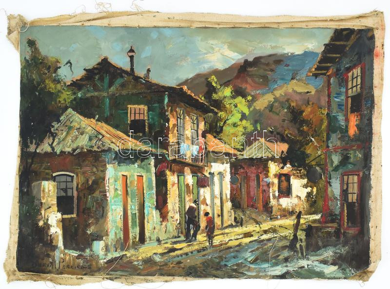 Leírás: Durval Pereira jelzéssel: Utca sétálókkal. Olaj, vászon. Vakráma nélkül. 50x70 cm.