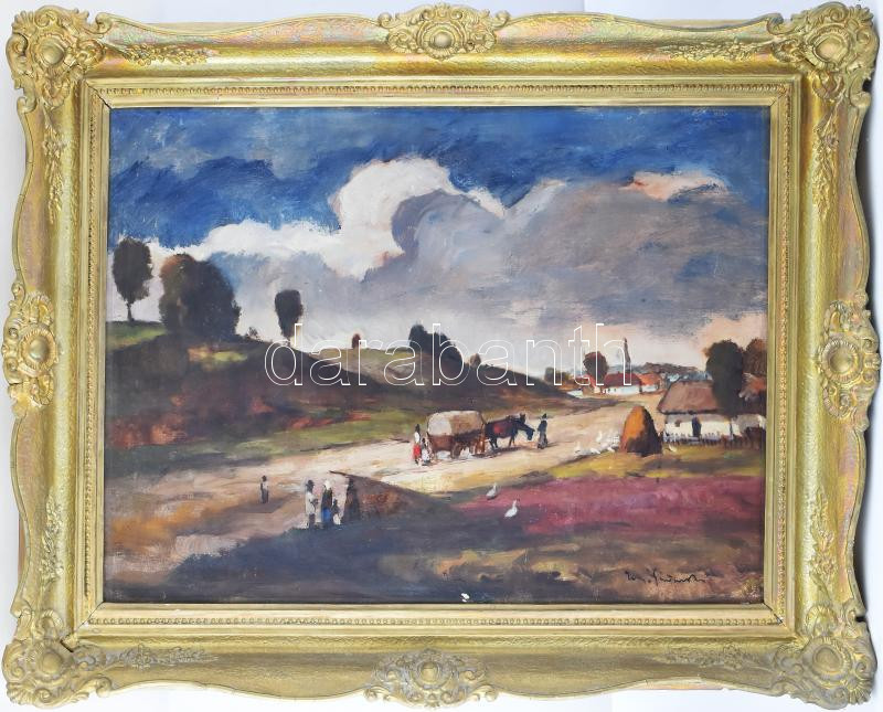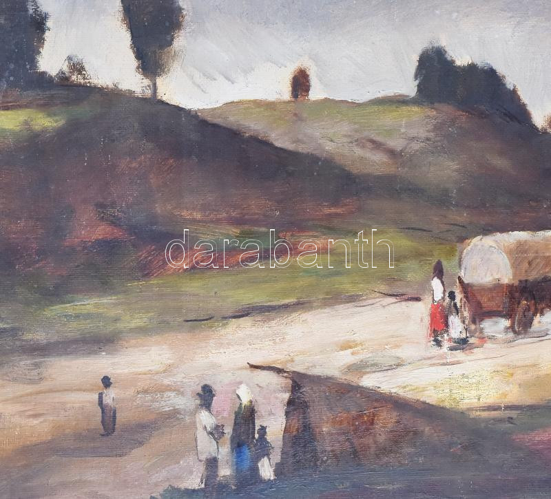 Iványi-Grünwald Béla műhelye: Vándorok. Olaj, vászon, jelezve jobbra lent. Apró felületi sérüléssel (festék lepergés). Dekoratív, kissé sérült fakeretben. 60×80 cm