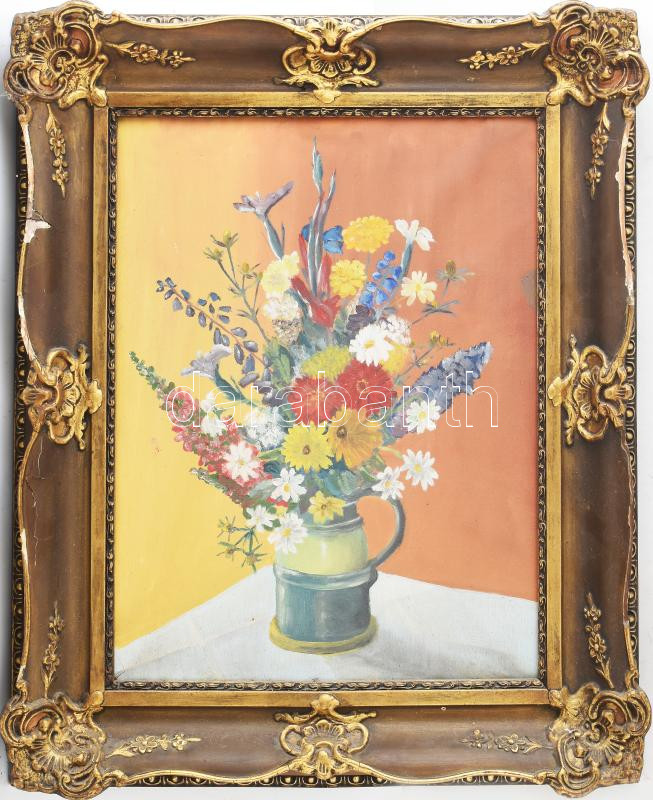 Jelzés nélkül: Csendélet. Olaj, vászon, dekoratív keretben kissé sérül... https://www.darabanth.com/hu/472-Gyorsarveres/472.0/Festmenyek-es-grafikak/Festmenyek-es-grafikak-jelzessel-jelzes-nelkul~1000002/Jelzes-nelkul-Csendelet-Olaj-vaszon-dekorativ-keretben-kisse-serult-keret-35x47-cm~II3062796