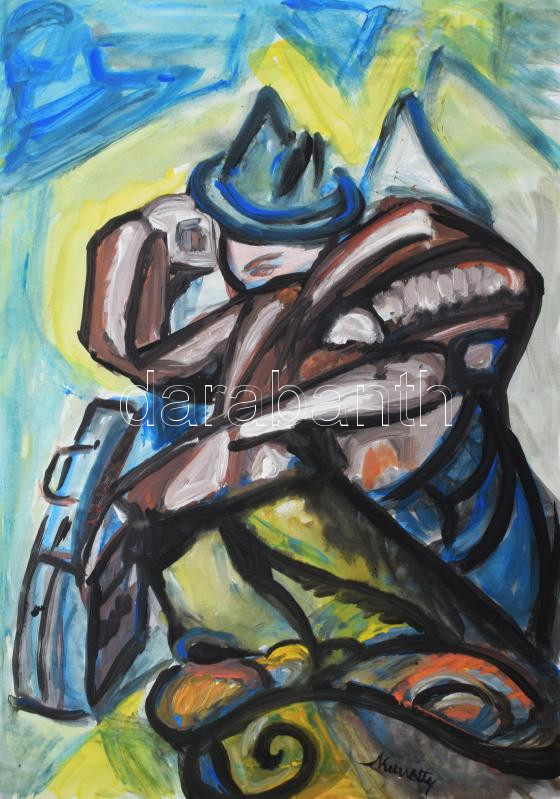 Leírás: Kmetty jelzéssel: Alvó alak. Vegyes technika, papír. 70x50 cm
