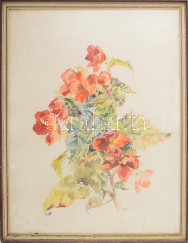 Leírás: MDF jelzéssel: Virágok. Akvarell, papír. Üvegezett, kissé kopott fakeretben. 57x44 cm