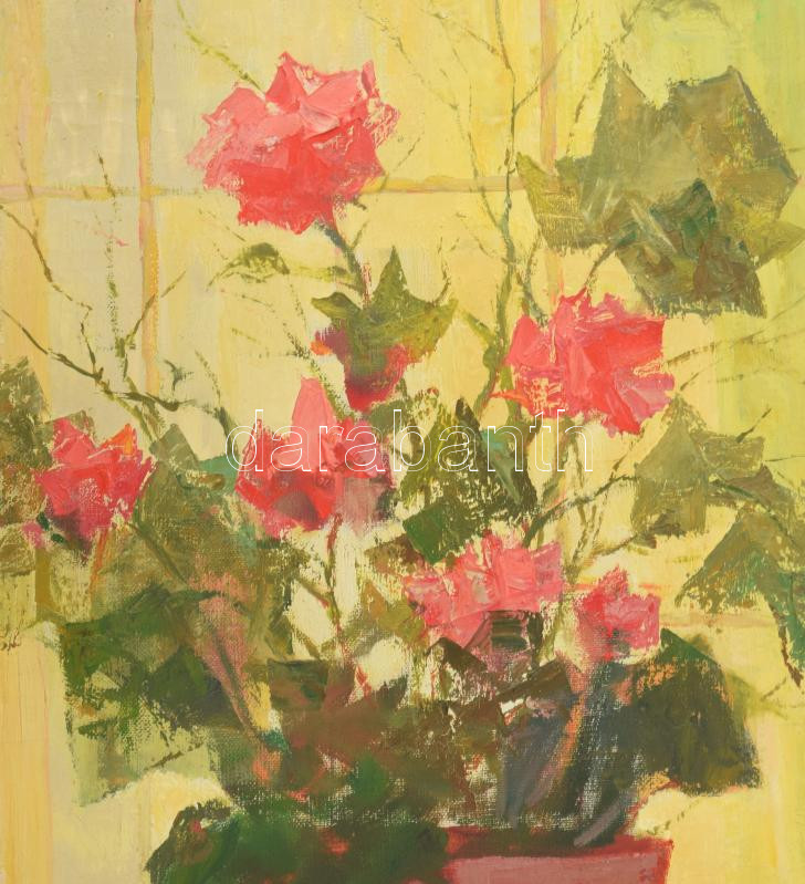 Leírás: Nagy jelzéssel: Csendélet. Olaj, vászon, keretben. 80x50 cm