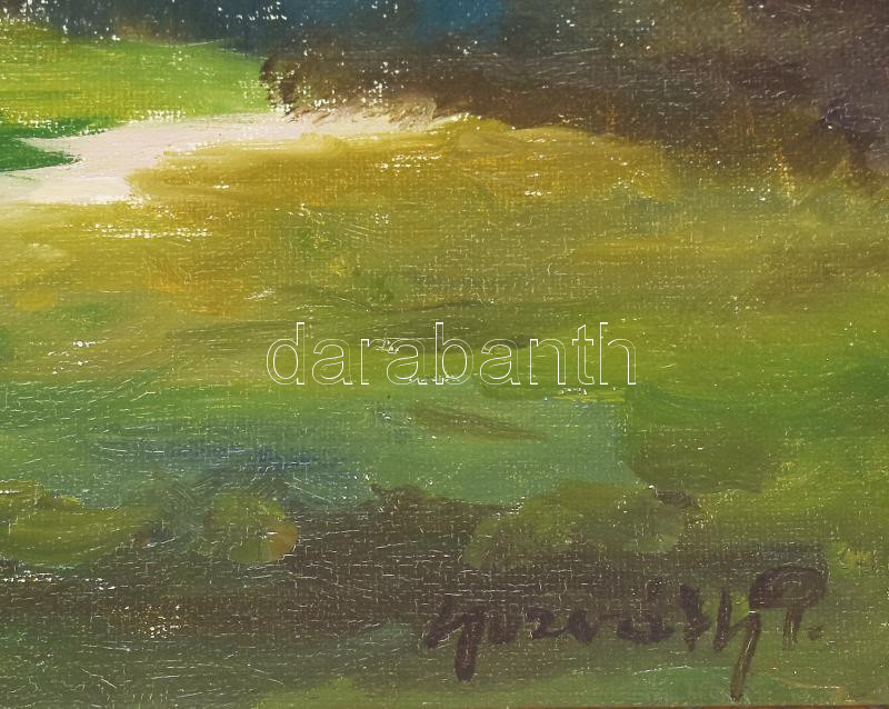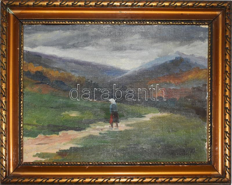 Leírás: Olvashatatlan jelzéssel: Hazafelé. Olaj, vászon, kartonon. Szélein kissé kopott. Dekoratív fakeretben. 23x31,5 cm