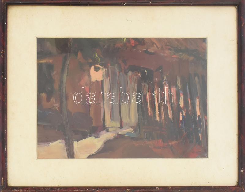 Leírás: Olvashatatlan jelzéssel: Színes kerítés. Olaj, papír. Üvegezett fakeretben. 19x29 cm