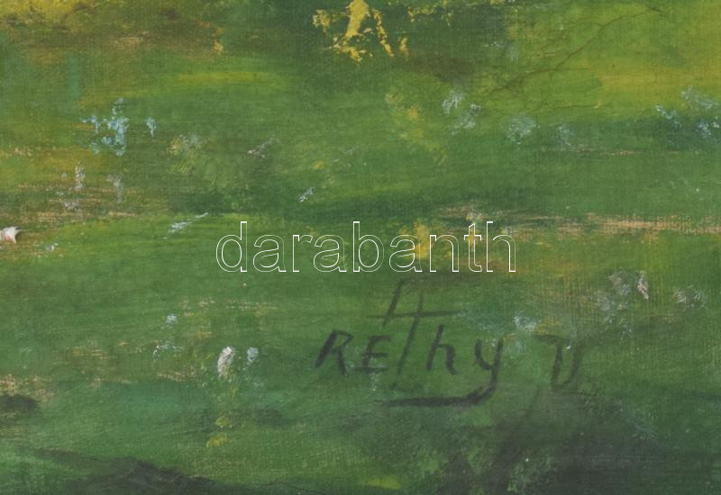 Leírás: Réthy V jelzéssel: Libapásztorlányok. Olaj, vászon. Sérült. Dekoratív, kissé kopott fakeretben. 60x80 cm