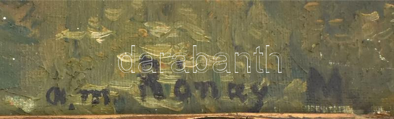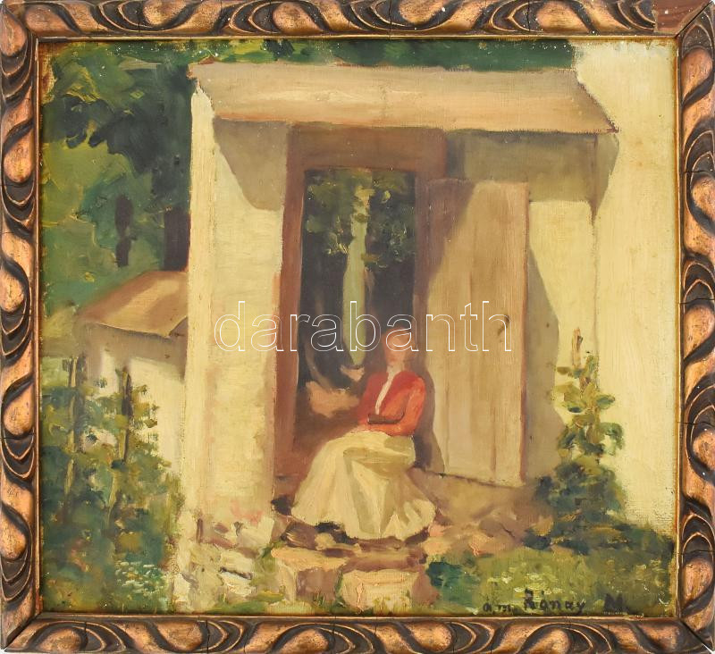 Rónay M jelzéssel, XX. sz. eleje: Részlet a Zemplén vármegyei Bocskai kastélyból. Olaj, vászon. Apró sérülésekkel. 36x40 cm. Dekoratív, sérült fakeretben.