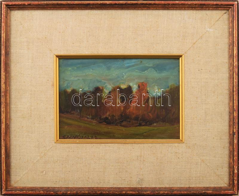 Leírás: Szénási Mihály (1925-): Csendes ősz. Olaj, farost. Jelezve balra lent. Hátoldalán autográf felirattal. 13x19 cm. Keretben.