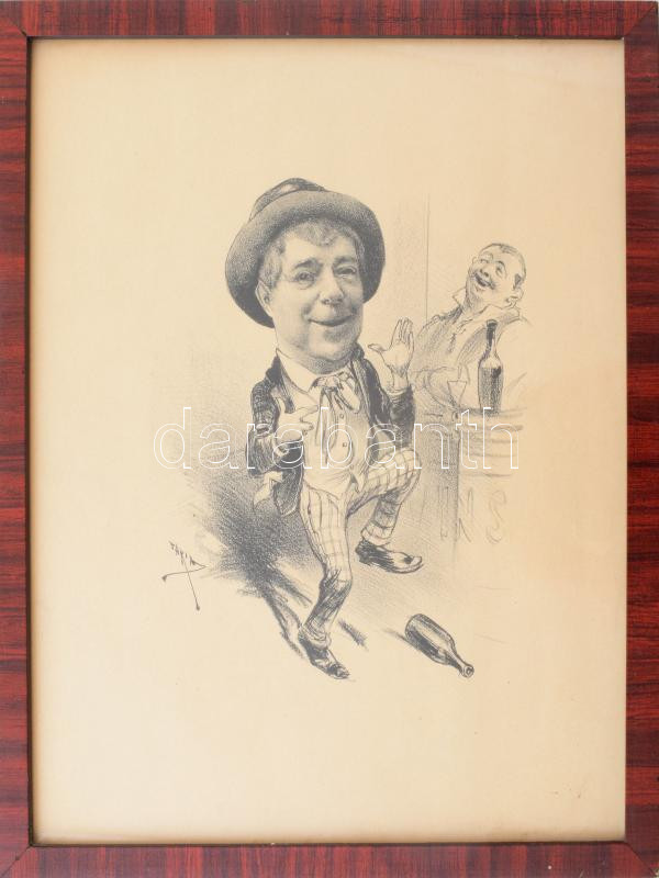 Leírás: Faria jelzéssel: Táncoló alak (karikatúra), XIX sz. vége. Litográfia, papír, jelzett a litográfián. Üvegezett fakeretben. 32×25 cm