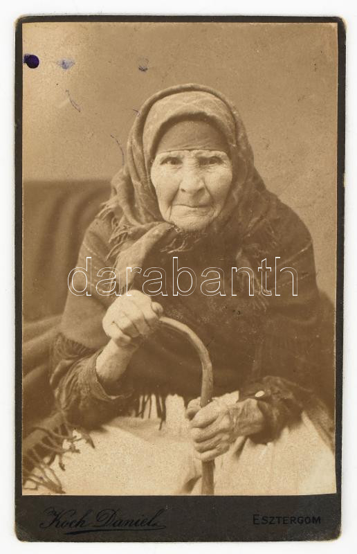 Leírás: 1914. Ivanits Istvánné 1848-as forradalmi markotányosnő kabinetfotója 104 éves korában 1914-ben, 10,5x6,5 cm