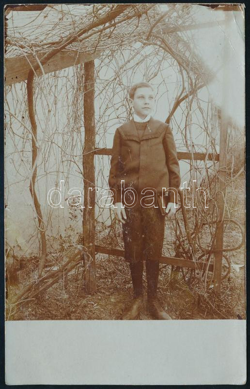 Leírás: cca 1905-08 Sárdy Brutus (1892-1970) későbbi festőművész, restaurátor gyermekkori portréja, fotólap, jelzés nélkül, 14x9 cm