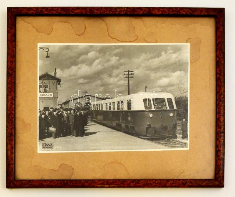 Leírás: cca 1934 Árpád gyorssínautóbus (Aamot) Krakkóban (Kraków), Ganz-fotó, üvegezett fa keretben, 21×28 cm