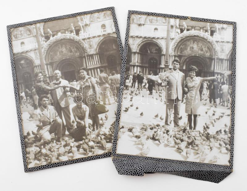 Leírás: cca 1960 Velence, Szent Márk tér. 2 db fotó üveg mögött 18x25 cm