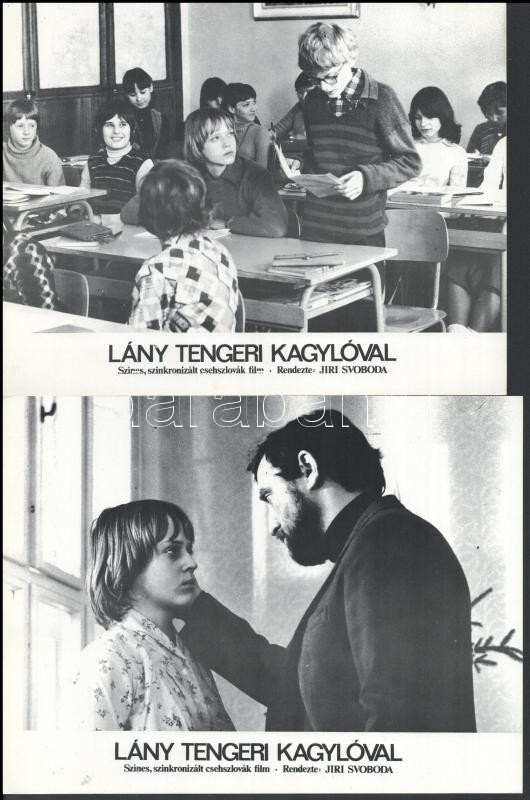 cca 1989 előtt készült, ,,Lány tengeri kagylóval" című csehszlovák film jelenetei és szereplői, 2 db produkciós filmfotó (vitrinfotó, lobbyfotó) nyomdatechnikával sokszorosítva kartonpapírra, egyoldalas nyomással, a használatból eredő (esetleges) kisebb hibákkal, 18x24 cm