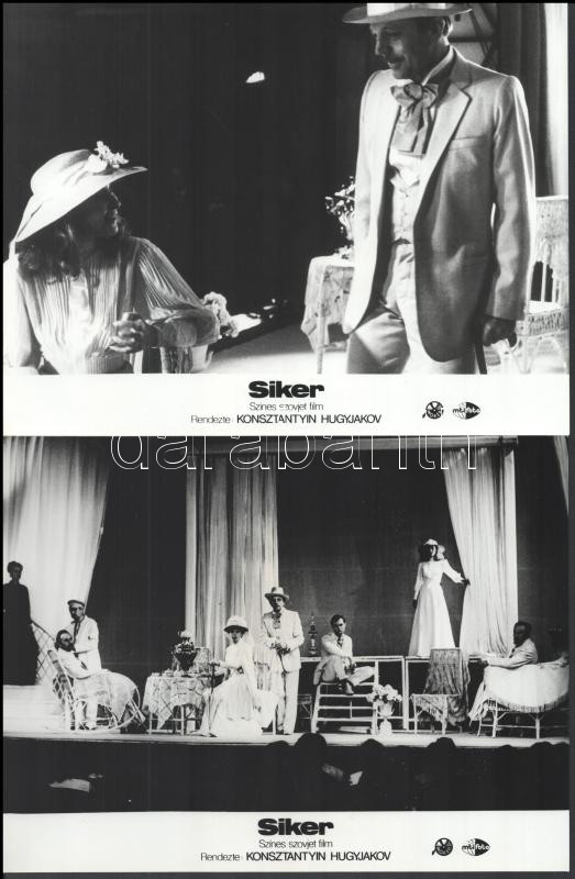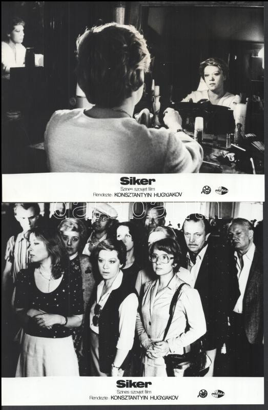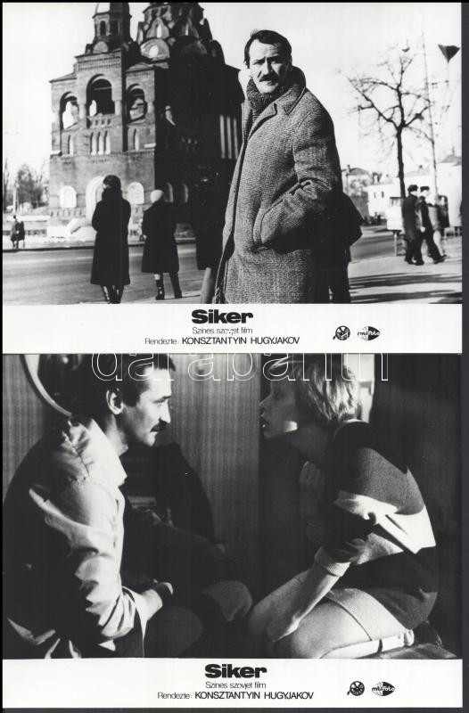 cca 1989 előtt készült, ,,Siker" című szovjet film jelenetei és szereplői, 6 db vintage produkciós filmfotó (vitrinfotó, lobbyfotó) ezüst zselatinos fotópapíron, a használatból eredő (esetleges) kisebb hibákkal, 18x24 cm