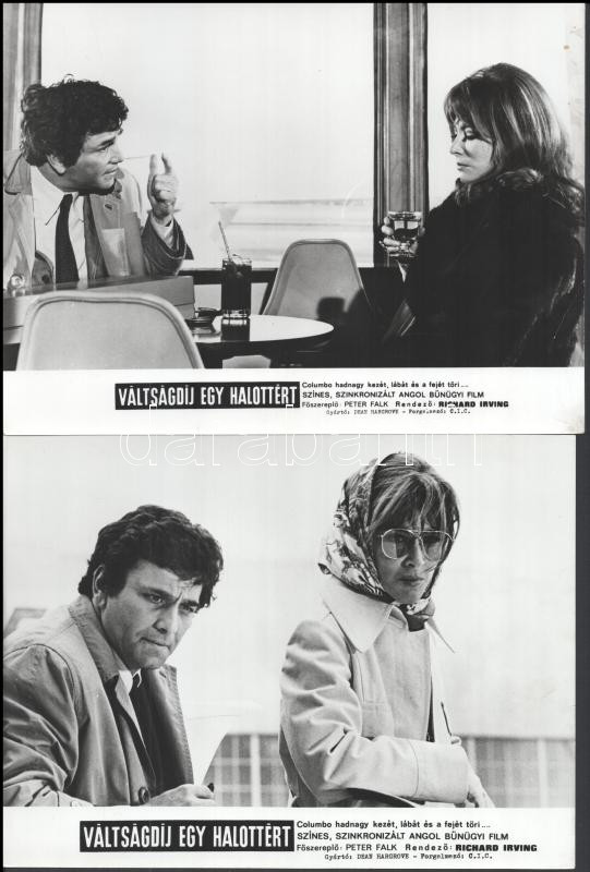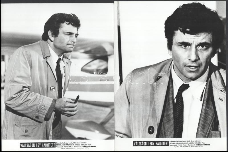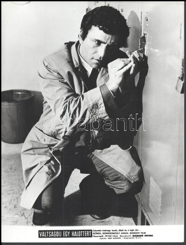 cca 1989 előtt készült ,,Váltságdíj egy halottért" c. film öt jelenete Peter Falk főszereplésével, 5 db vintage produkciós filmfotó (vitrinfotó, lobbyfotó) ezüst zselatinos fotópapíron, a használatból eredő (esetleges) kisebb hibákkal, 18x24 cm