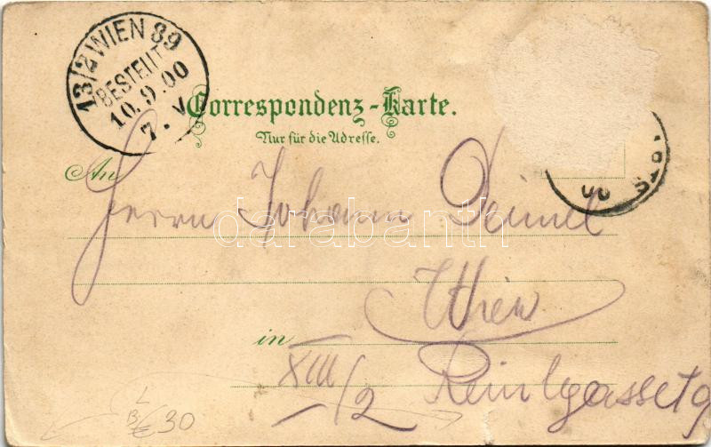 Leírás: 1900 Groß-Siegharts, Localbahn, Schlossergasse, Schloss, Bad und Promenade / railway, train, castle, street, spa. Hofbauer Art Nouveau, floral, litho (Rb)