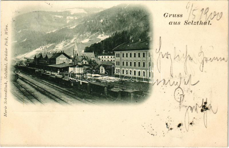 Leírás: 1900 Selzthal, Bahnhof. Maria Schweditsch / railway station, trains