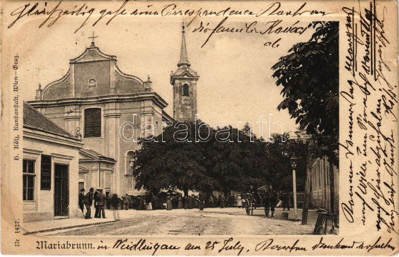 1903 Wien, Vienna, Bécs XIV. Hadersdorf-Weidlingau, Weidlingau; Mariab... https://www.darabanth.com/hu/472-Gyorsarveres/472.0/Kepeslapok/Ausztria~1500029/1903-Wien-Vienna-Becs-XIV-Hadersdorf-Weidlingau-Weidlingau-Mariabrunn-pilgrimage-church-EB~II3165657