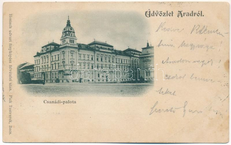 1902 Arad, Csanádi palota. Honisch fényképész felvétele, Pick testvére... https://www.darabanth.com/hu/472-Gyorsarveres/472.0/Kepeslapok/Erdely~1500007/1902-Arad-Csanadi-palota-Honisch-fenykepesz-felvetele-Pick-testverek-kiadasa-palace-EB~II3118466