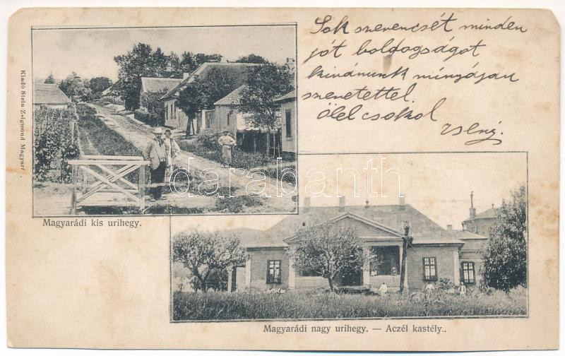 1903 Magyarád, Magyarát, Maderat; Kis úrihegy, Nagy úrihegy, Aczél kas... https://www.darabanth.com/hu/472-Gyorsarveres/472.0/Kepeslapok/Erdely~1500007/1903-Magyarad-Magyarat-Maderat-Kis-urihegy-Nagy-urihegy-Aczel-kastely-Stein-Zsigmond-kia~II3197643