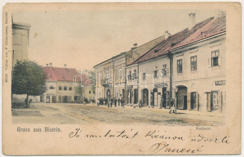 1904 Beszterce, Bistritz, Bistrita; Rathaus / Városház, Karl J. Gottst... https://www.darabanth.com/hu/472-Gyorsarveres/472.0/Kepeslapok/Erdely~1500007/1904-Beszterce-Bistritz-Bistrita-Rathaus-Varoshaz-Karl-J-Gottstein-es-R-Mann-uzlete-F~II3198083