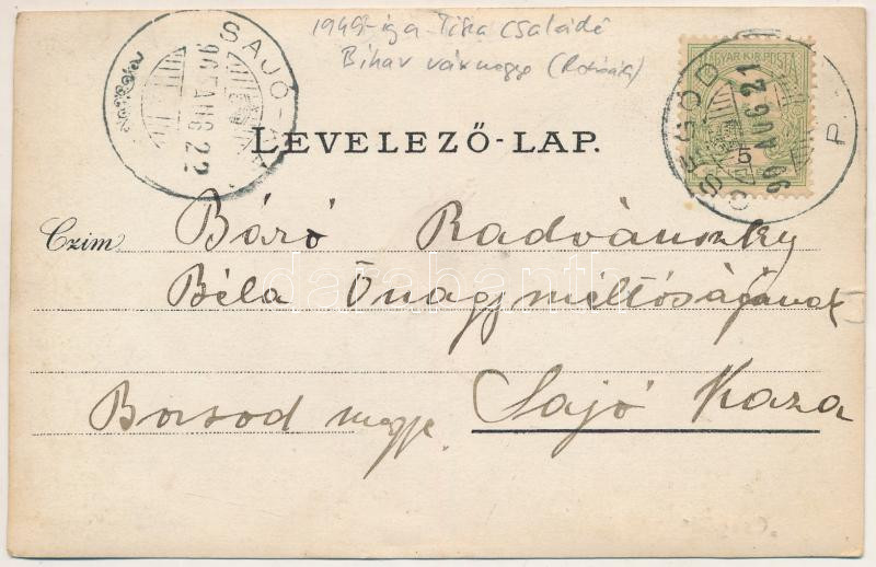 Leírás: 1905 Erdőgyarak, Ghiorac, Csegőd; Tisza kastély / castle in Cighid. photo (szakadás / tear)