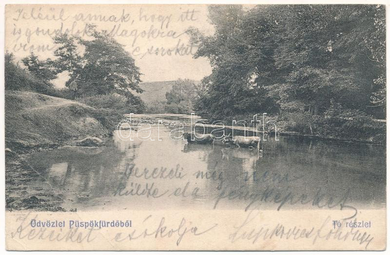 Leírás: 1905 Püspökfürdő, Szentlászlófürdő, Baile 1 Mai, Episcopiei (Nagyvárad, Oradea); tó részlet. Helyfi László kiadása / lake (fa)