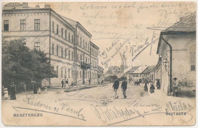 1906 Beszterce, Bistritz, Bistrita; utca. F. Stolzenberg kiadása / str... https://www.darabanth.com/hu/472-Gyorsarveres/472.0/Kepeslapok/Erdely~1500007/1906-Beszterce-Bistritz-Bistrita-utca-F-Stolzenberg-kiadasa-street-EM~II3198079