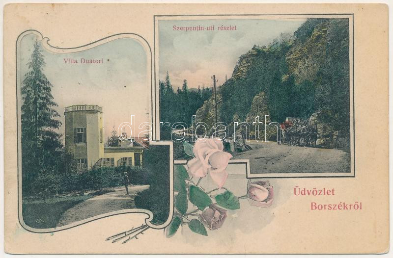Leírás: 1906 Borszék, Borsec; Villa Duatori, Szerpentin úti részlet. Soós kiadása / villa, road. Art Nouveau, Floral (fl)