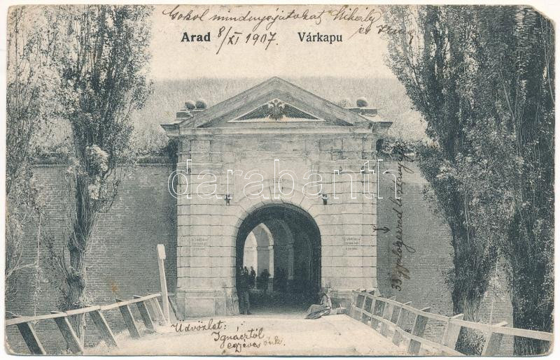 1907 Arad, Várkapu katonákkal / castle gate with K.u.K. soldiers (EM) https://www.darabanth.com/hu/472-Gyorsarveres/472.0/Kepeslapok/Erdely~1500007/1907-Arad-Varkapu-katonakkal-castle-gate-with-KuK-soldiers-EM~II3201038