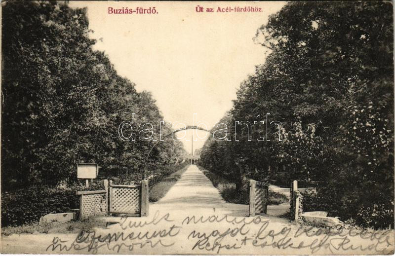 1907 Buziás-fürdő, Baile Buzias; út az Acél fürdőhöz. Francz testvérek... https://www.darabanth.com/hu/472-Gyorsarveres/472.0/Kepeslapok/Erdely~1500007/1907-Buzias-furdo-Baile-Buzias-ut-az-Acel-furdohoz-Francz-testverek-kiadasa-street-to~II3014403