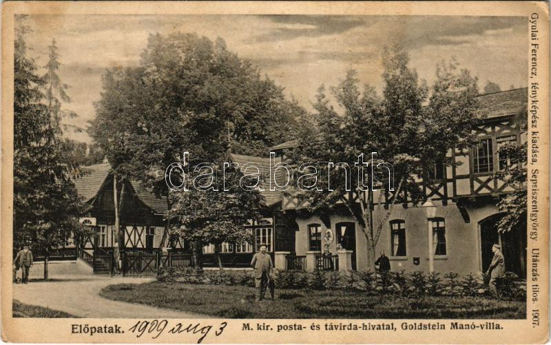 1909 Előpatak, Valcele; M. kir. posta és távirdahivatal, Goldstein Manó villa. Gyulai Ferenc fényképész kiadása / post and telegraph office, villa (fl)