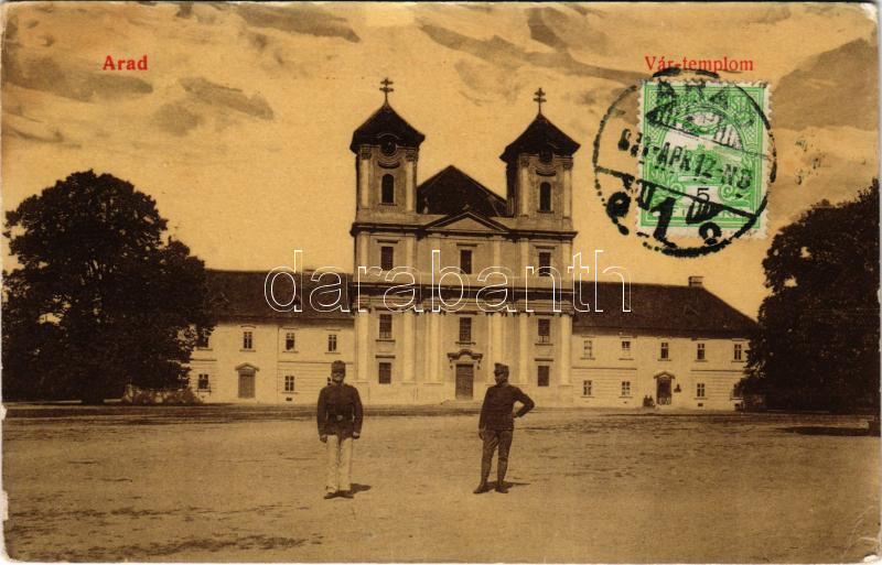 1911 Arad, Vártemplom, katonák. W.L. 505. / castle church, soldiers. T... https://www.darabanth.com/hu/472-Gyorsarveres/472.0/Kepeslapok/Erdely~1500007/1911-Arad-Vartemplom-katonak-WL-505-castle-church-soldiers-TCV-card-EK~II3197964