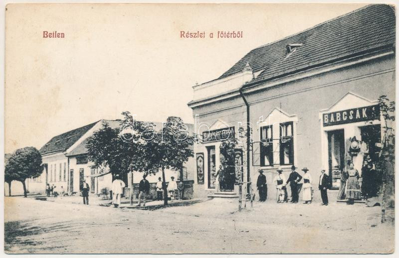 1912 Bethlen, Beclean; Fő tér, Babcsák Gerő és Babcsák A. üzlete. Schö... https://www.darabanth.com/hu/472-Gyorsarveres/472.0/Kepeslapok/Erdely~1500007/1912-Bethlen-Beclean-Fo-ter-Babcsak-Gero-es-Babcsak-A-uzlete-Schonfeld-es-David-kiadC3~II3198397