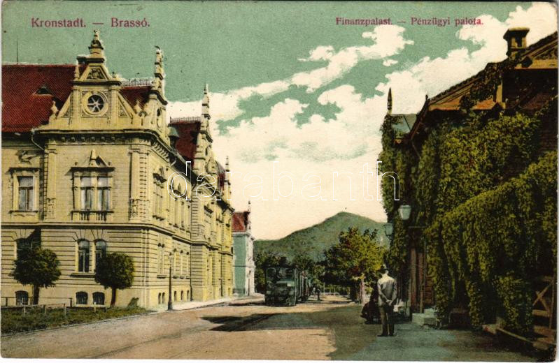 1916 Brassó, Kronstadt, Brasov; Pénzügyi palota, városi vasút, vonat, ... https://www.darabanth.com/hu/472-Gyorsarveres/472.0/Kepeslapok/Erdely~1500007/1916-Brasso-Kronstadt-Brasov-Penzugyi-palota-varosi-vasut-vonat-gozmozdony-Finanzpalas~II3198895