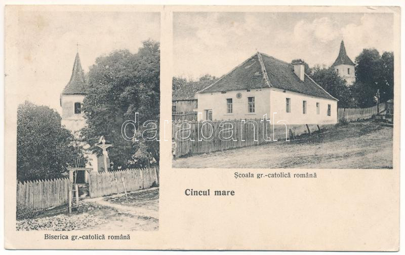 1917 Nagysink, Cincul Mare; Biserica gr.-catolica romana, Scoala gr.-catolica romana / Görögkatolikus templom és iskola / Greek Catholic church and school (kis szakadás / small tear)