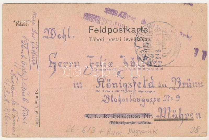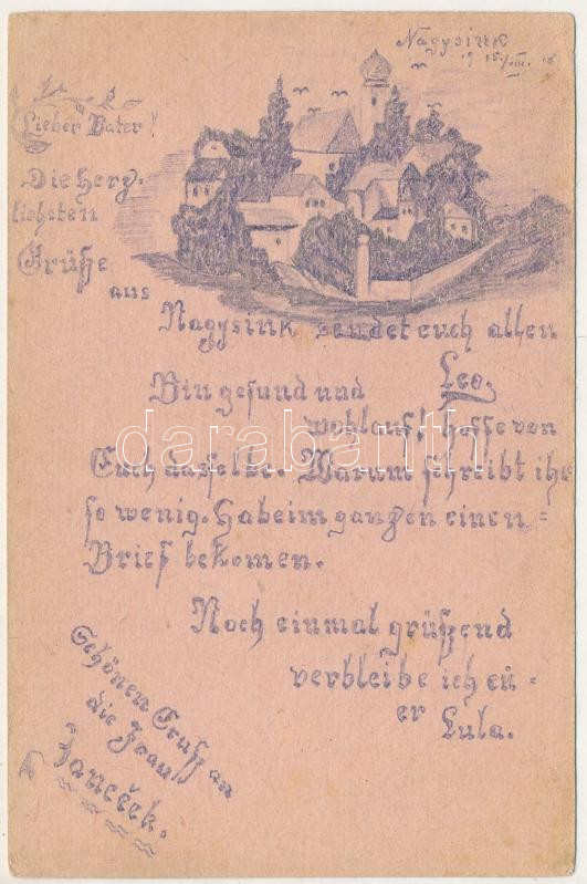 1918 Nagysink, Gross-Schenk, Cincul Mare, Cincu; Rajz tábori postai levelezőlapon Lev Jüttnertől / Feldpostkarte / WWI K.u.k. military drawing on field post (EB)