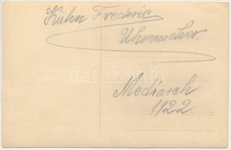 1922 Medgyes, Mediasch, Medias; Kühn Frederic Uhrmacher / Kühn F. órak... https://www.darabanth.com/hu/472-Gyorsarveres/472.0/Kepeslapok/Erdely~1500007/1922-Medgyes-Mediasch-Medias-Kuhn-Frederic-Uhrmacher-Kuhn-F-orakeszito-uzlete-belso-~II3198310